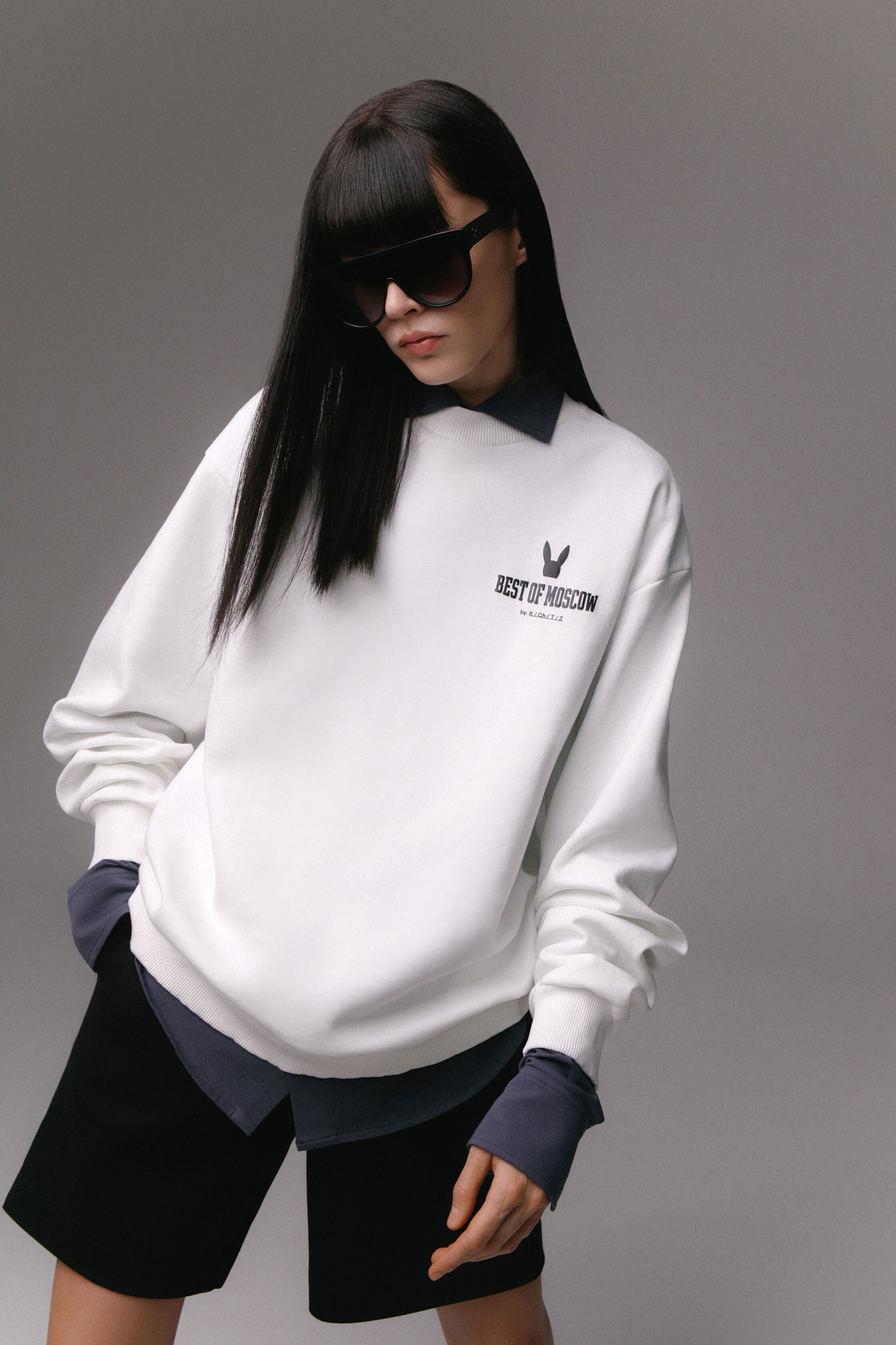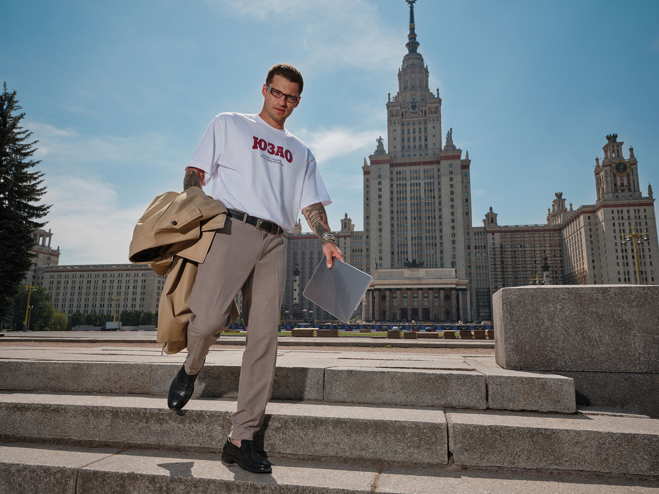 Современная арт-интеллигенция любит баланс между акцентами и лаконичностью, и дроп Best of Moscow идеально вписывается в эту концепцию. Свитшот и футболки можно смело комбинировать с акцентным низом — например, с выбеленными джинсами или цветными палаццо. А бомбер подойдет и для вечернего лука с платьем-комбинацией, и для образа с офисной белой рубашкой. Кстати, жители этого района проводят много времени на улице, и практичные вещи подойдут для любой ситуации.