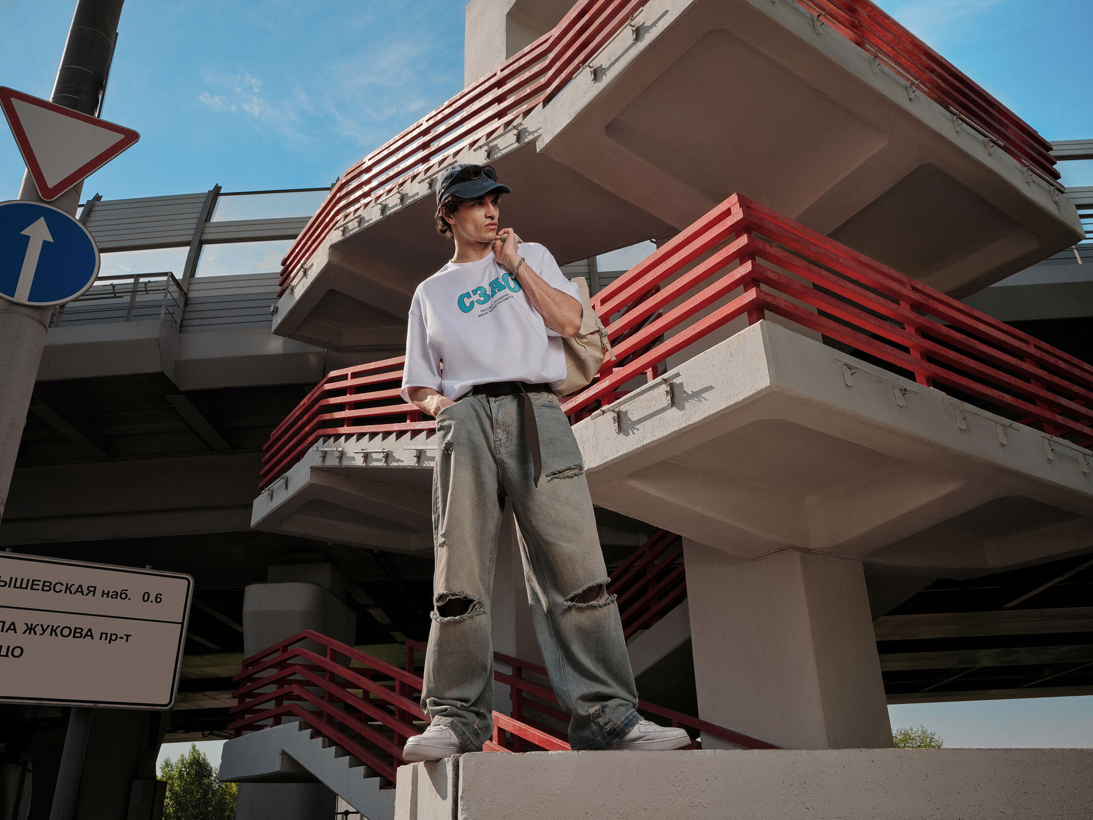 Жизнь в движении предполагает функциональность — и это отражается в коллекции KChTZ. Монохромная цветовая гамма не кажется скучной, ведь она отлично вписывается в концепцию урбанистического шика, характерного для этого района. А оверсайз-фасоны свитшота и модных футболок позволяют сочетать верх с низом любого стиля: от классических буткатов до дерзких карго.